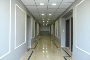 Glass exterior lift for apartments with access by RFID cards & two lifts for commercial floors, 3rd floor complete parking, backup generator on hallways and lifts, 24/7 CCTV security, garbadge collection and many more