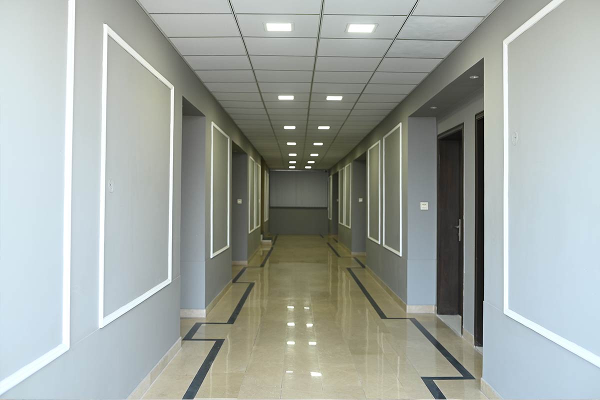 Glass exterior lift for apartments with access by RFID cards & two lifts for commercial floors, 3rd floor complete parking, backup generator on hallways and lifts, 24/7 CCTV security, garbadge collection and many more